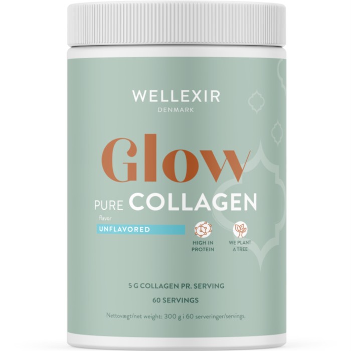 Wellexir Glow Pure Collagen är ett rent och multifunktionellt kollagenpulver. Pulvret är värmestabilt och har en neutral smak.