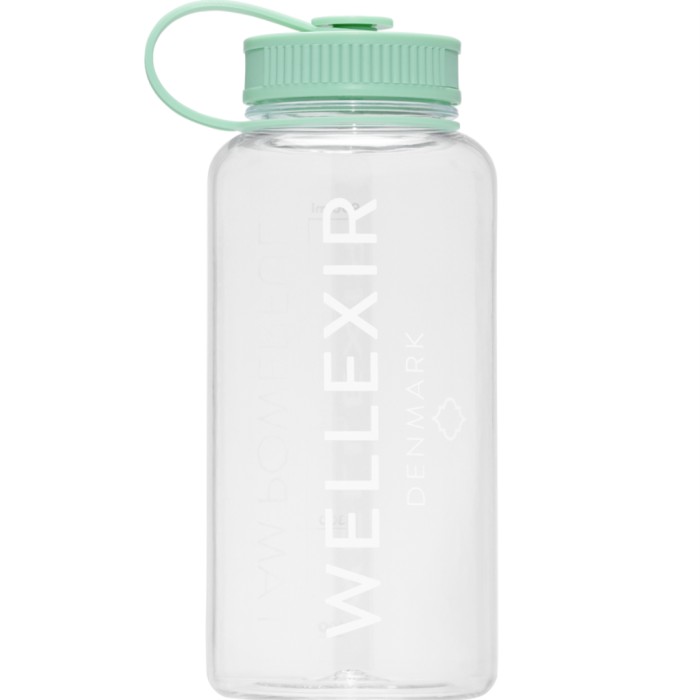 Wellexir Premium Water Bottle är en vattenflaska i plast som rymmer 1 liter vatten.