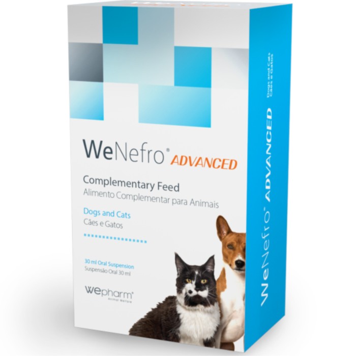WeNefro Advanced är ett kompletteringsfoder för hundar och katter som består av ingredienser för hjälp att upprätthålla normal njurfunktion.