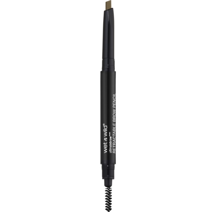 Ultimate Brow Retractable Pencil från Wet n Wild är en ögonbrynspenna som fyller i och definierar dina ögonbryn. Den triangelformade pennan skapar små tunna streck för att efterlikna riktiga strån, och fyller i kanterna av brynen för att framhäva dess form. Har en inbyggd borste för att forma ögonbrynen.