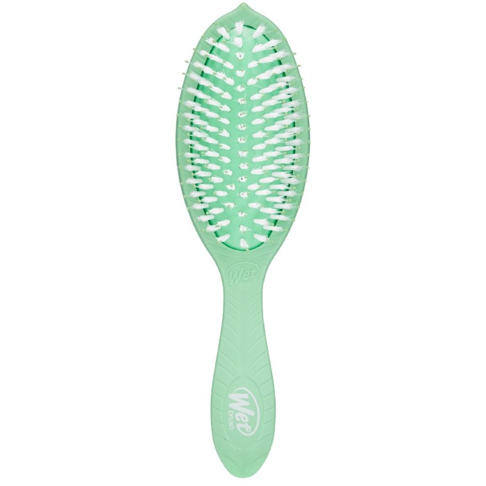 Wetbrush Go Green Treatment & Shine är en utredande glansborste som är biologiskt nedbrytbar. Borsten reder ut även grova och bångstyriga hår. Handtaget är tillverkat i biologiskt nedbrytbar växtstärkelse och borsten har både vildsvinsborst som fördelar den naturliga oljan i håret - vilket gör håret glansigt och slätt - och mjuka och flexibla IntelliFlex®-borst som lätt glider genom håret och tar bort all typ av “ryck”.