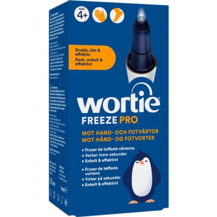 Wortie Freeze Pro är en frysbehandling av vårtor framtagen för att vara enkel och effektiv vid hand- och fotvårtor. Wortie Freeze Pro är effektiv och endast några sekunders behandling gör att vårtans rot förstörs. Pennan är enkel att använda och är utformad så att man både intuitivt och med hjälp av tydliga markeringar förstår hur den ska aktiveras och användas. (Skulle man trots detta missförstå hur pennan aktiveras så lossnar pennan från hatten och man måste starta om.)