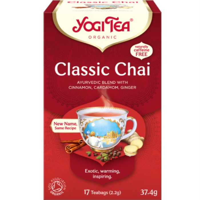 YogiTea Classic Chai är ett ayurvediskt kryddte som värmer kropp och själ. Det ekologiska teet är en perfekt blandning av ingefära, kardemumma, kanel och kryddnejlikor ger ett te som är kryddigt, sött och uppfriskande.