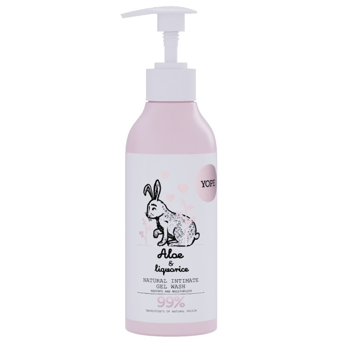 YOPE Natural Intimate Wash Aloe & Liquorice är en intimtvätt med extrakt av aloe vera och lakritsrot. Tvättgelen innehåller 99% naturliga ingredienser och är framtagen för att ge en skonsam rengöring av det yttre intimområdet.
