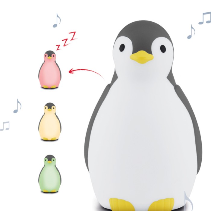 Pingvinen Pam är framtagen för att hjälpa både föräldrar och barn att få den sömn de behöver. Pam har 5 olika färger på nattljuset. Välj mellan rosa, vit, blå, röd och multifärgad. Nattlampan kan lysa hela natten eller stängas av automatiskt efter 30 minuter. Den trådlösa högtalaren ger dig möjlighet att spela upp en stor variation av sånger och berättelser för alla åldrar.