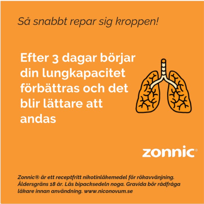 När du plötsligt slutar tillföra kroppen nikotin via tobak drabbas du av olika former av obehag, s.k. abstinensbesvär. Med hjälp av Zonnic Pepparmint kan du förhindra eller åtminstone minska dessa obehag genom att du fortsätter tillföra kroppen en liten mängd nikotin under en övergångsperiod. Råd och stöd ökar normalt chansen att lyckas.
