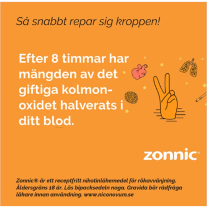 Nikotinet i Zonnic Pepparmint lindrar nikotinbegär och abstinensbesvär när du slutar röka och motverkar därigenom återfall till rökning hos rökare som är motiverade att sluta eller för att underlätta rökreduktion hos rökare som inte kan eller är ovilliga att sluta röka. När du plötsligt slutar tillföra kroppen nikotin via tobak drabbas du av olika former av obehag, s.k. abstinensbesvär. Med hjälp av Zonnic Pepparmint kan du förhindra eller åtminstone minska dessa obehag genom att du fortsätter tillföra kroppen en liten mängd nikotin under en övergångsperiod. Råd och stöd ökar normalt chansen att lyckas.